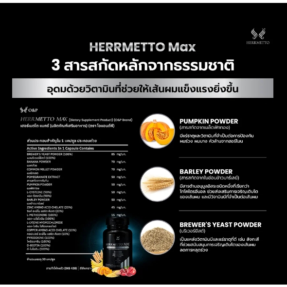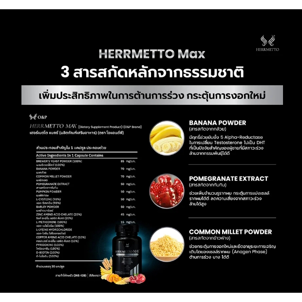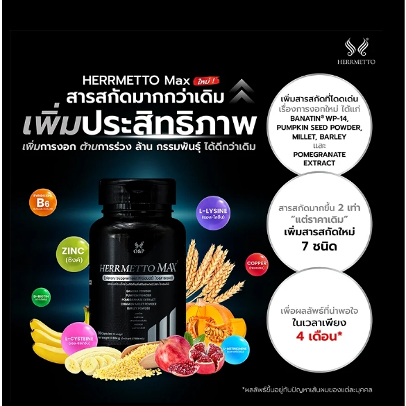 ส่งด่วน!! Herrmetto MAX สูตรเข้มข้น 2 กระปุก กระปุกละ 30 แคปซูล