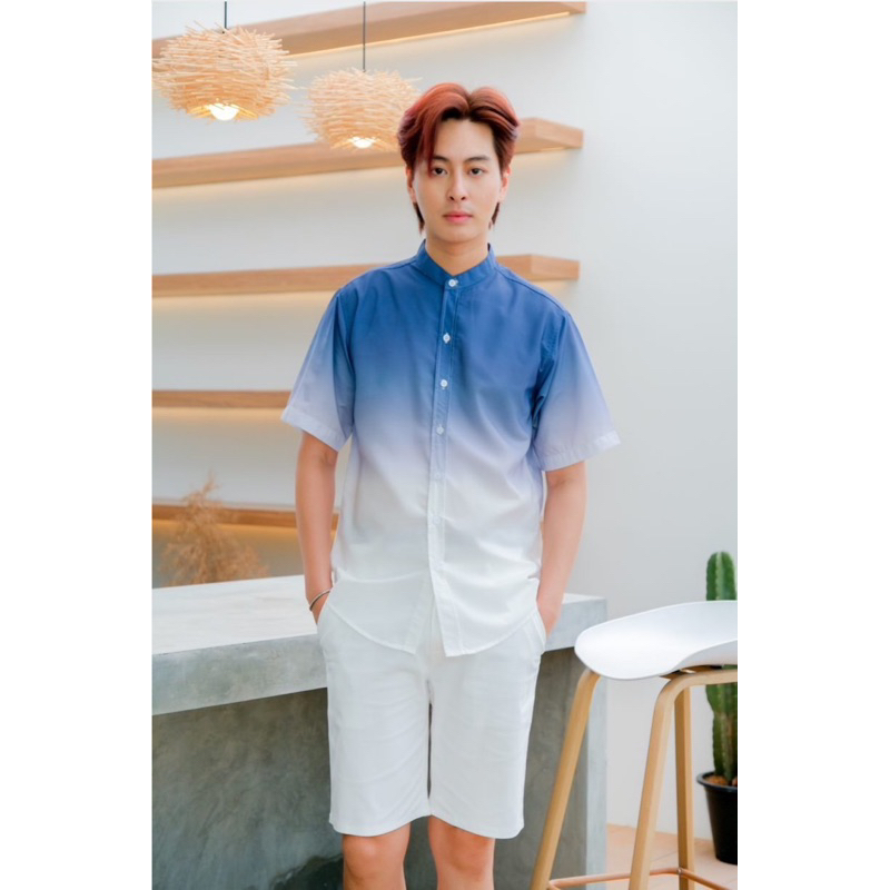 L'M men's style เสื้อเชิ้ตผู้ชาย แขนสั้นไล่สี