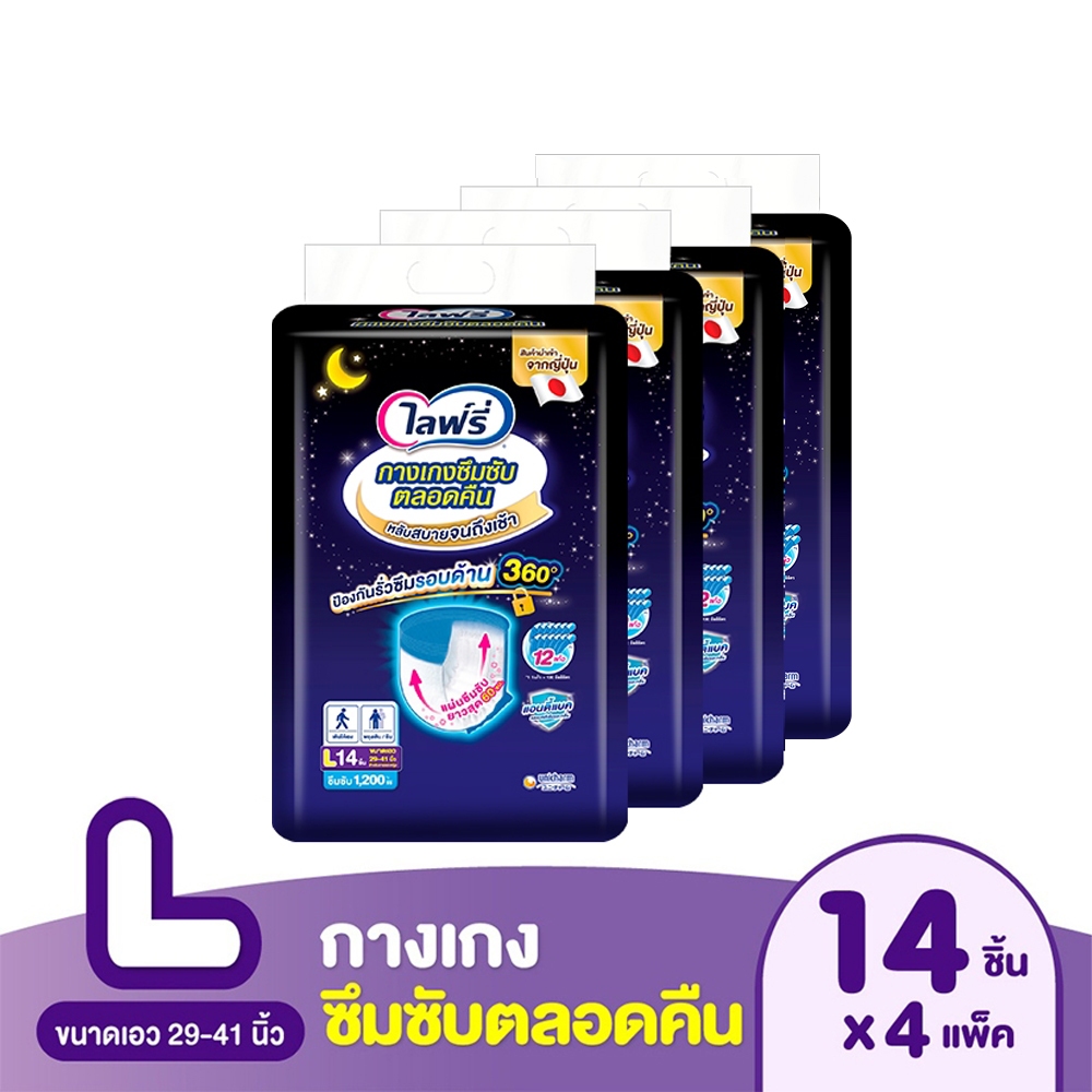 [ขายยกลัง! ลังละ 4 แพ็ค] ไลฟ์รี่ กางเกงซึมซับตลอดคืน ไซส์ M-XL LIFREE LONG LASTING PANTS SIZE M-XL
