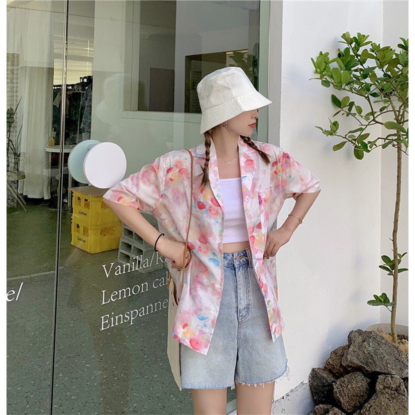 เสื้อฮาวาย ลายดอกไม้ DX-1433 กระดุมแถวเดียว เนื้อผ้าใส่สบาย เสื้อ สงกรานต์ ผู้หญิง