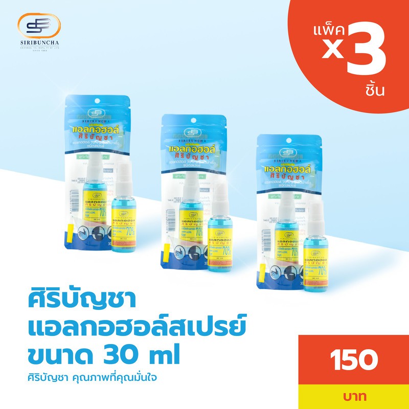 ศิริบัญชาแอลกอฮอล์สเปรย์ 30 ml แพ็คx3ชิ้น