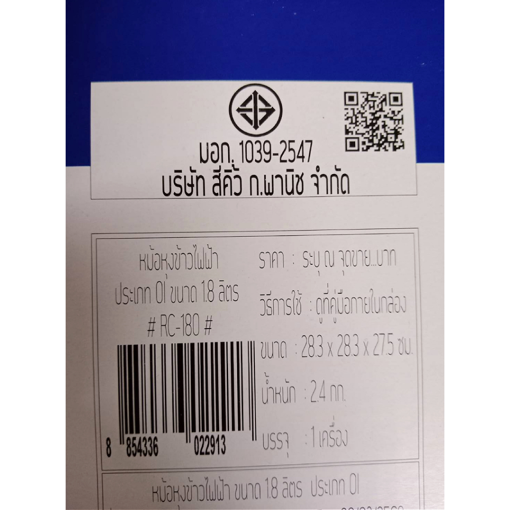 [อุ่นทั้งวัน] 🔥หม้อหุงข้าวอุ่นทิพย์ 1.8 ลิตร รุ่น Kashiwa RC-180 หม้อหุงข้าว หม้ออุ่นทิพย์ มัลติฟังก์ชั่น ไม่มีตำหนิ*
