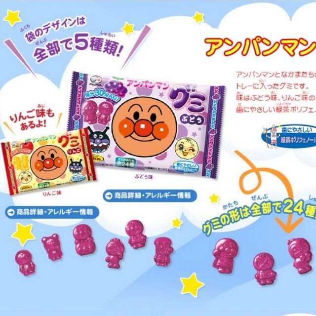 Fujiya Anpanman (19g) อันปังแมน เยลลี่ วิตามินซี รสแอปเปิ้ล-รสองุ่น เยลลี่สำหรับเด็ก จากญี่ปุ่น ราคา/1ซอง