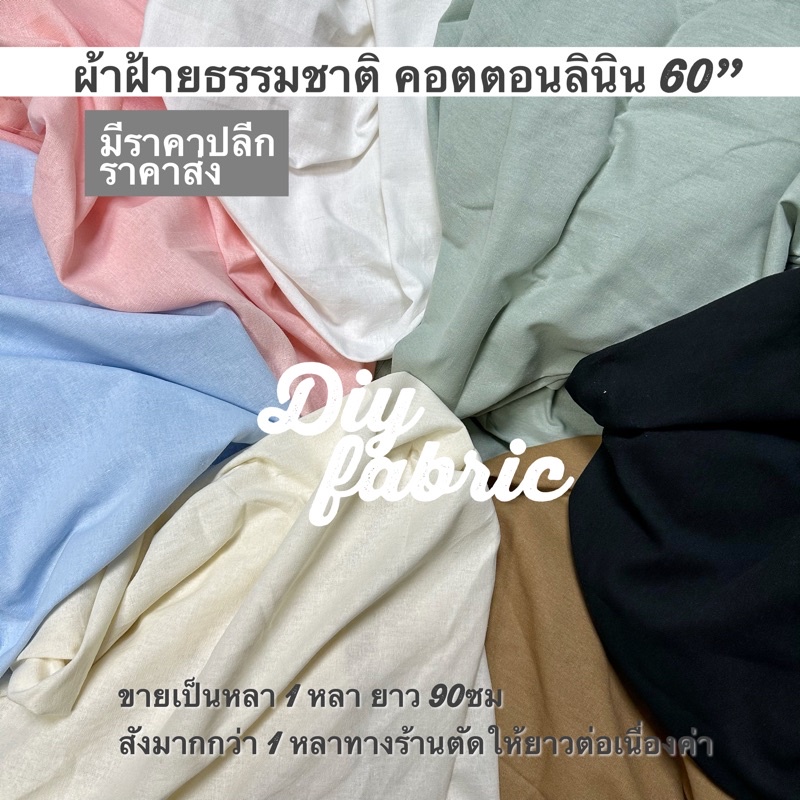ผ้าฝ้าย คอตตอนลินิน 60" พร้อมส่ง 9สี เนื้อดี 150*90ซม. ฝ้ายเเท้ ฝ้ายลินิน ผ้าหลา ผ้าเมตร ผ้าตัดชุด กระเป๋า กางเกง