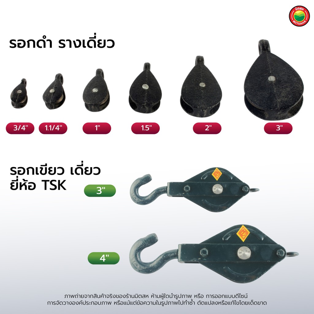 รอก ดำ ราง เดี่ยว เหล็ก ขนาด 3/4นิ้ว,1นิ้ว,1.1/4นิ้ว,1.5นิ้ว,2นิ้ว,3นิ้ว, PULLEY รอกดำ หล่อดำ ลอก ดึงเชือก มือดึง มิตสห