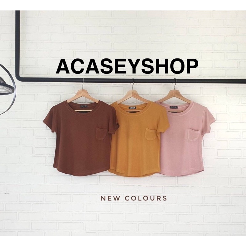 Acasey เสื้อครอป คอกลม เนื้อผ้า Spandex rayon เนื้อนุ่มเด้ง ชายโค้ง อก32-36"