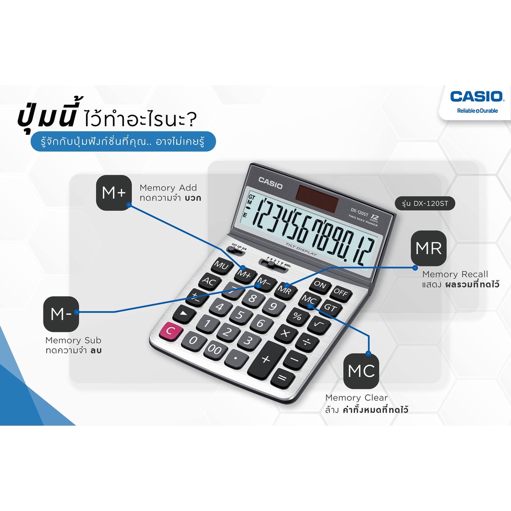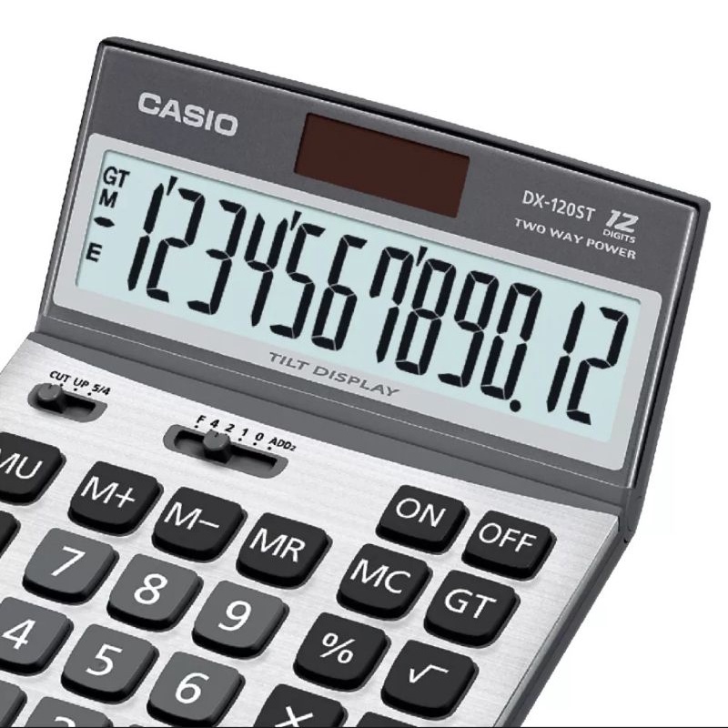 Casio Calculator เครื่องคิดเลข คาสิโอ รุ่น DX-120ST แบบปรับหน้าจอได้ 12 หลัก สีเงิน
