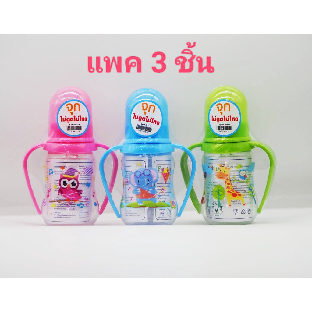 Festino ขวดนมเด็ก 4ออนซ์แขนจับทรงบูท จุกนมซิลิโคนไซส์ S รุ่นไม่ดูดไม่ไหล คอมาตรฐาน สเกลสีเห็นชัดเจน