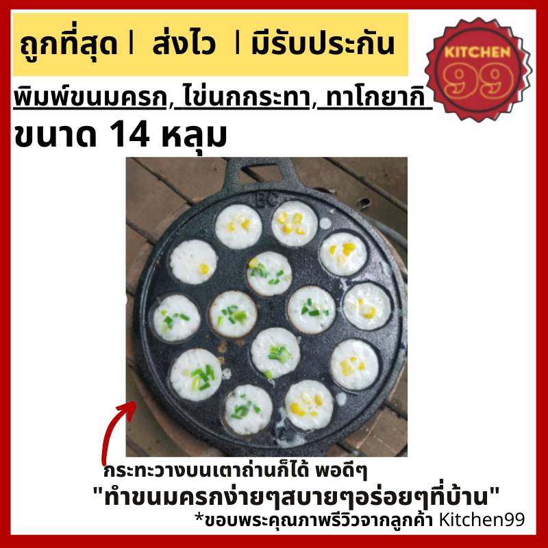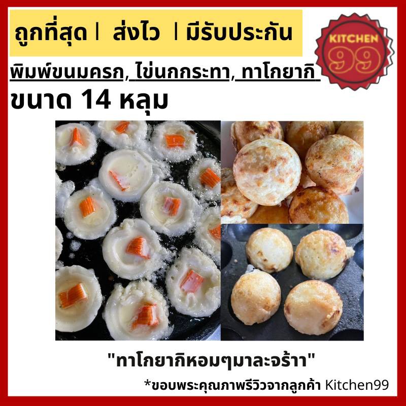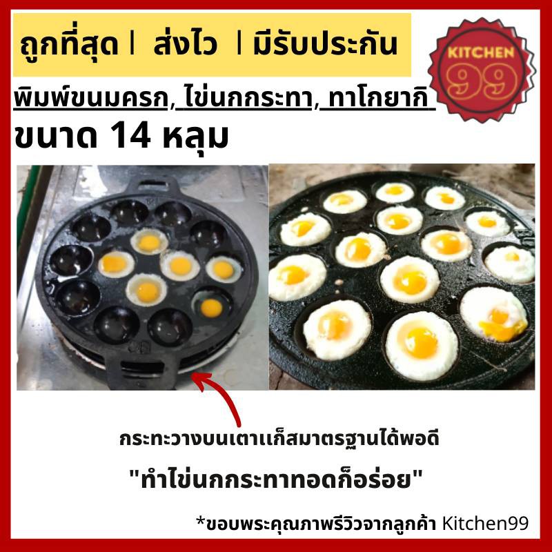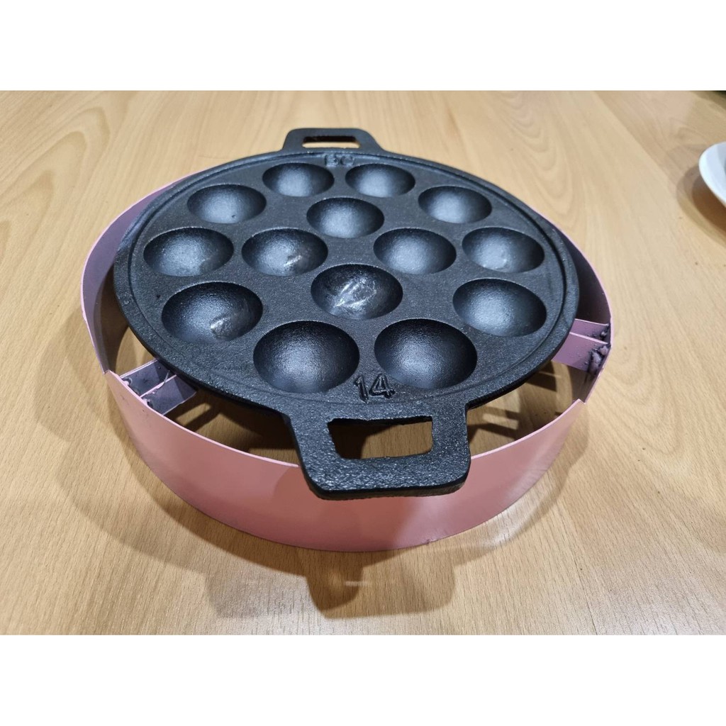 กระทะขนมครก ไข่นกกระทา ทาโกะยากิ เผาแล้วพร้อมใช้ ขนาด 14 หลุม 24cm เหล็กหล่อ ใช้ได้กับเตาทุกประเภท