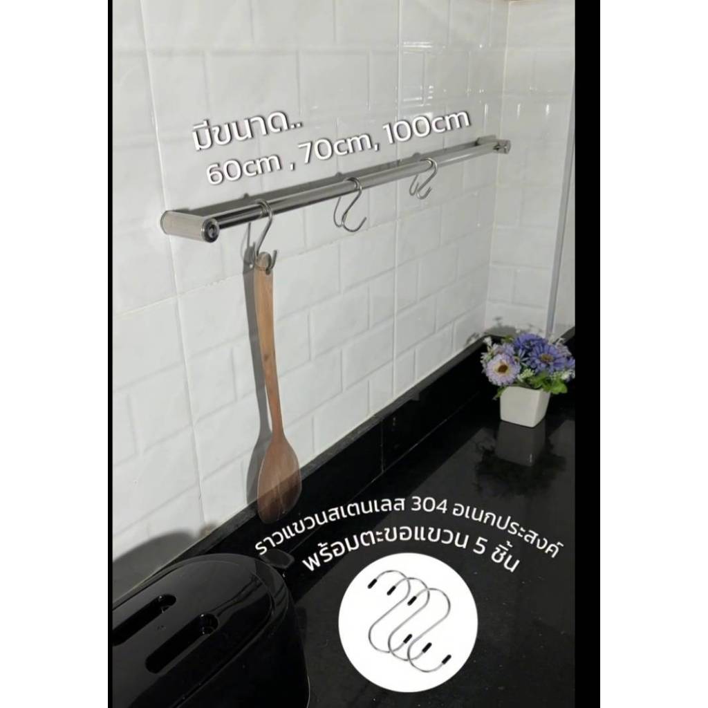 Kowa homeware ราวแขวนสเตนเลสอเนกประสงค์ติดผนัง 60 ซม. แถมตะขอ S 5 ชิ้น Stainless Steel 304 KWH-KR003