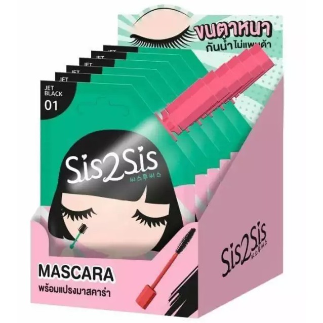 (6ซอง/กล่อง) Sis2Sis Volumizing Mascara 01 ซิสทูซิส วอลลุ่มไมซิ่ง มาสคาร่า 01 กล่องชมพูเขียว [1106]