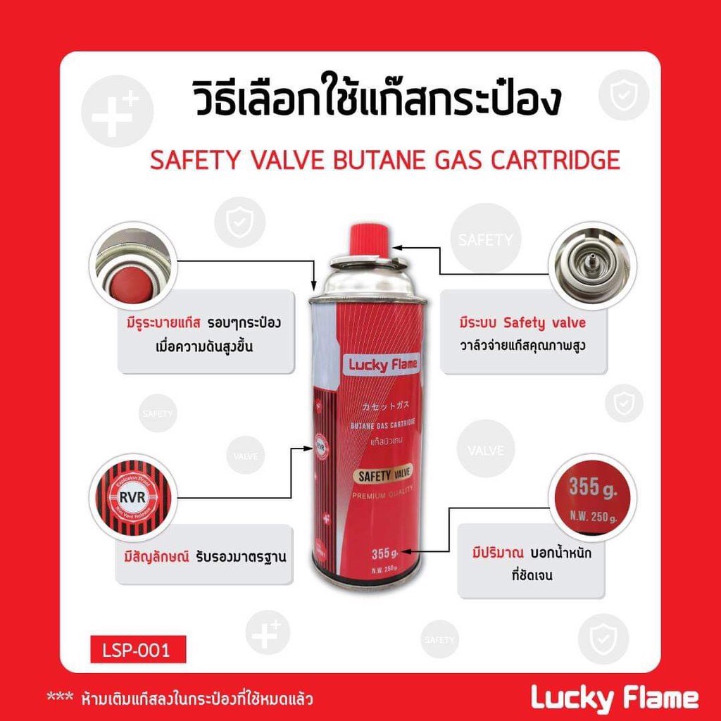 Lucky Flame แก๊สกระป๋อง รุ่น LSP-001 แก๊สบิวเทน ปริมาณ 250 กรัม (แพ็ค 4 กระป๋อง)
