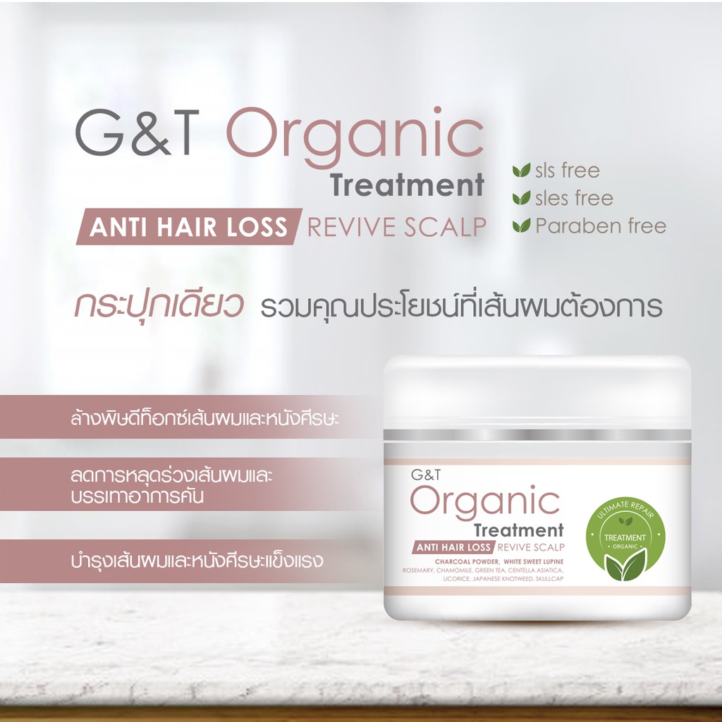 ลดผมร่วง ทรีตเมนต์ไวท์สวีทลูปิน+ผงถ่านญี่ปุ่น สูตรออร์แกนิค G&T Organic Ultimate Repair บรรเทาคัน สารสกัดสมุนไพร 250 ml