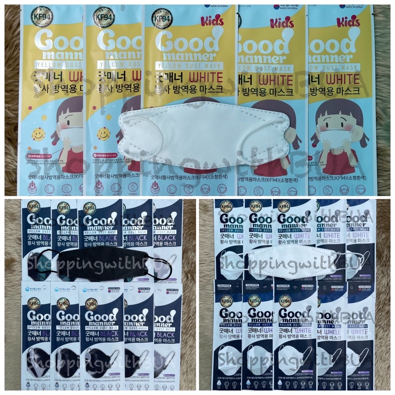 ‼️พร้อมส่ง‼️Good Manner KF94 3D Mask หน้ากากอนามัยเด็ก หน้ากากอนามัยผู้ใหญ่ สีขาว/สีดำ แมสเกาหลี KF94 ของแท้ กรอง4ชั้น