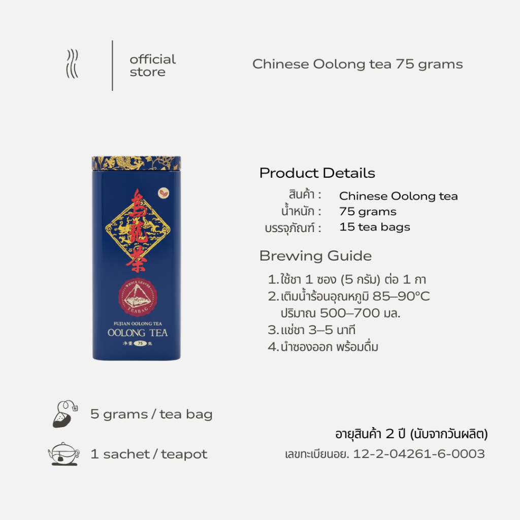 FUJIAN | Chinese Oolong Tea | 15 Sachets (75 g) | ชาอูหลงพรีเมียม