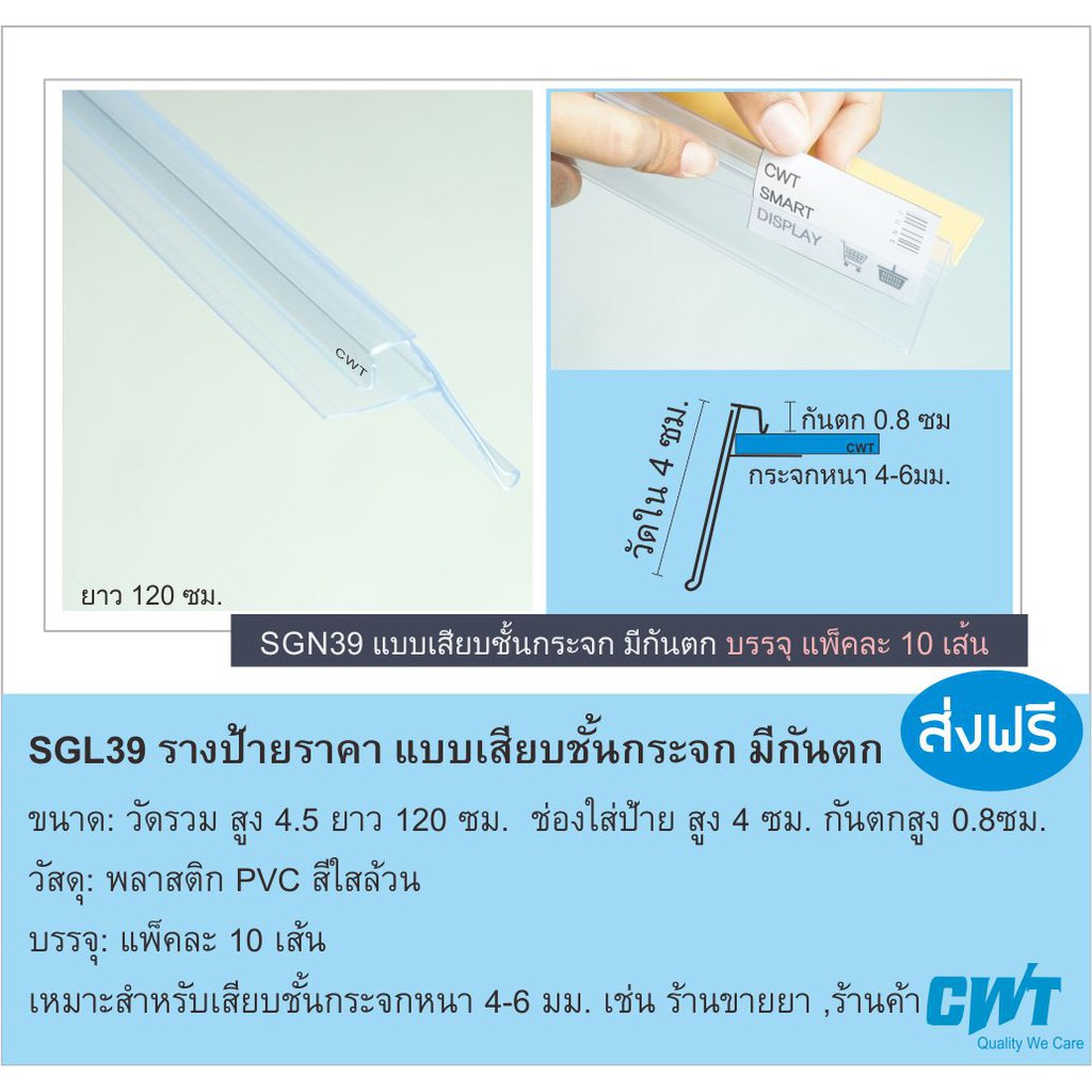 SGL39 ตัดฟรีตามขนาด!! รางพลาสติกป้ายราคา มีกันตก หน้าชั้นวางสินค้า ป้ายบอกราคา แบบเสียบ price strip ราคา 10 เส้น