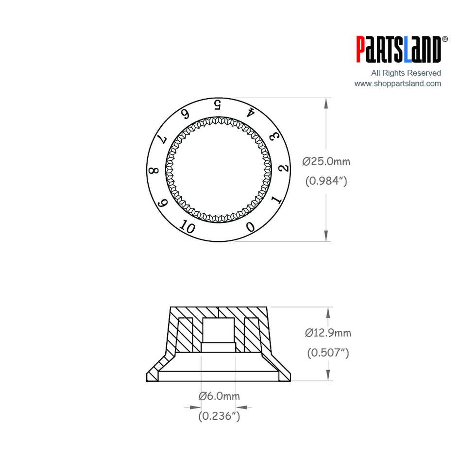Partsland PLV & PLT Strat Knob Set (1 Volume, 2 Tone) ปุ่มโวลุ่มและโทนสแตรท Made in Korea