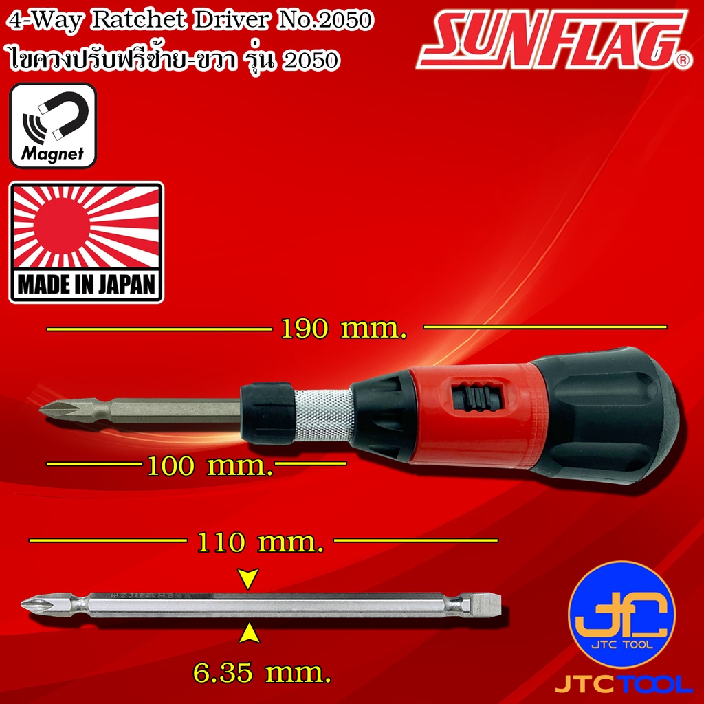 Sunflag ไขควงปรับฟรีซ้ายขวาปลายมีแม่เหล็กปากแฉกและปากแบน รุ่น 2050 - 4 IN 1 Ratchet Drivers No.2050