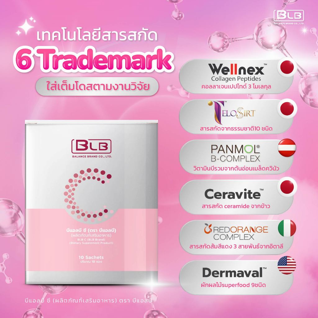 BLB C บีแอลบีซี คอลลาเจน3โมเลกุล สูตรใหม่ 6งานวิจัยใน1ซอง ของแท้100% Balance C BLC BLBC บาลานซ์ซี