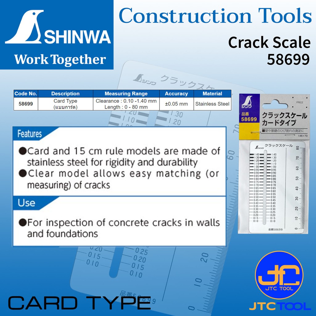 Shinwa แผ่นเช็ครอยร้าวสแตนเลส รุ่น 58699 - Crack Scale No. 58699