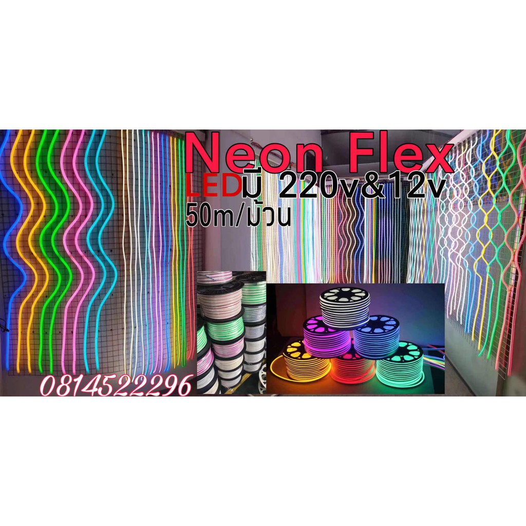 NEON FLEX สีไม่เพี้ยน ไฟสายยาง นีออนเฟร๊ก 50M/1 ม้วนIP65 220v หรือ 12v เลือกได้กันน้ำกันฝน