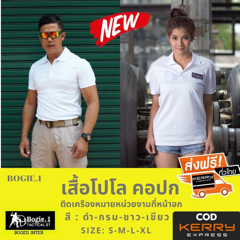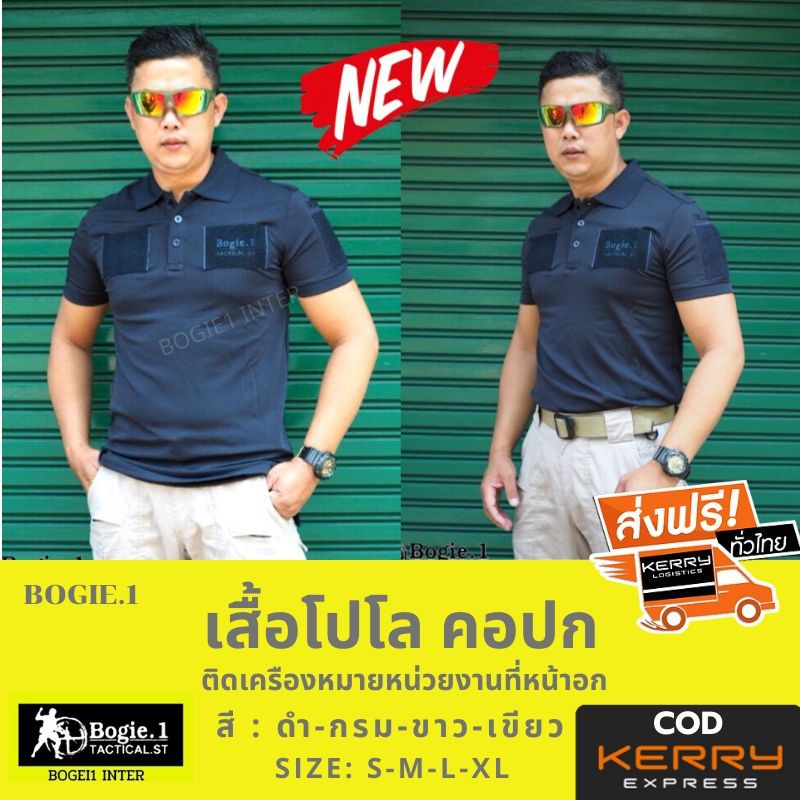 Bogie1 เสื้อยืดโปโล คอปก ตีนตุ๊กแก ติดป้ายหน่วยงาน แขนสั้น