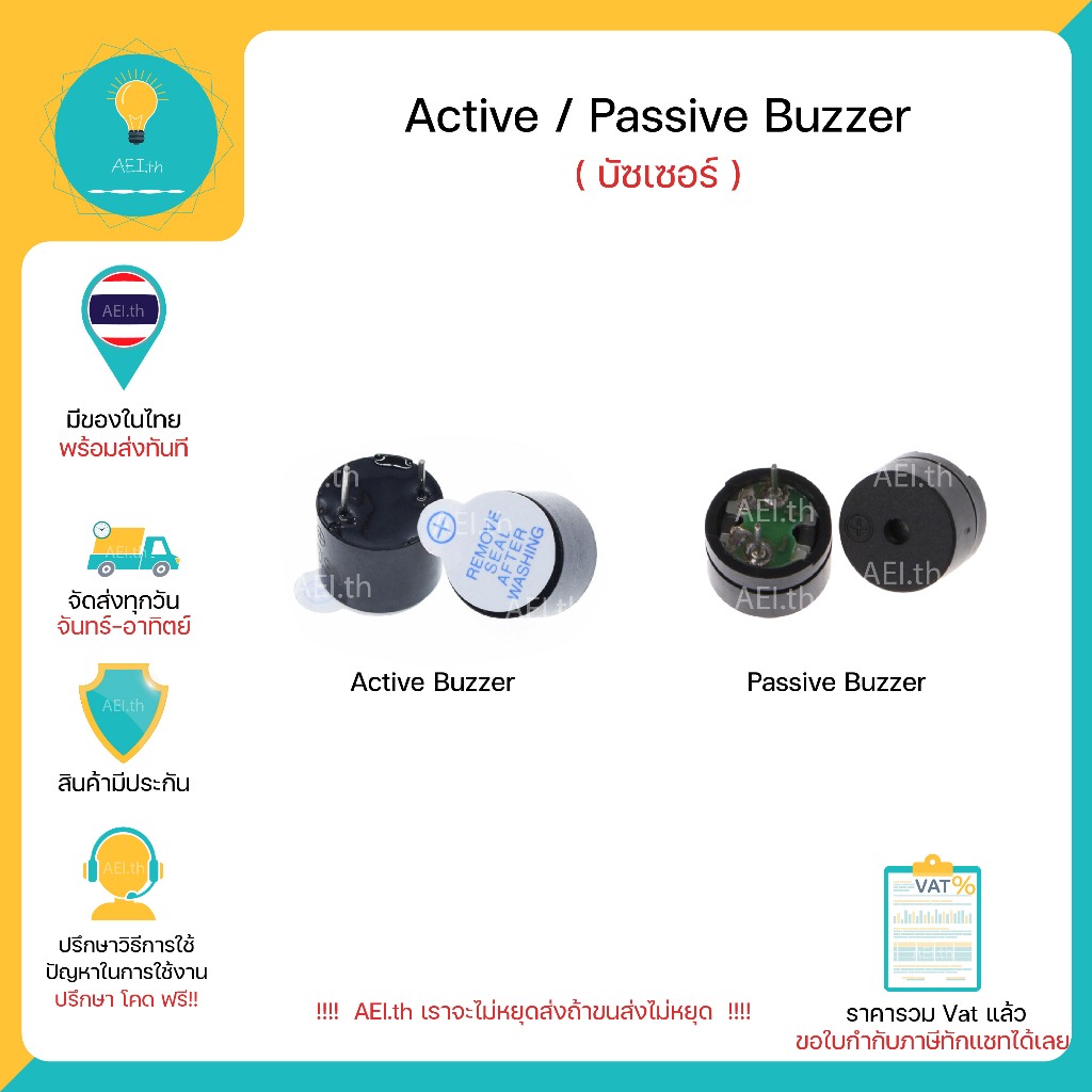 ฺBuzzer หัวบัซเซอร์ Active-Buzzer Passive-Buzzer Head Buzzer ใช้ได้ทั้งบอร์ด Arduino , Nodemcu , ESP32 พร้อมส่งทันที!!!