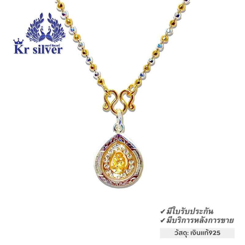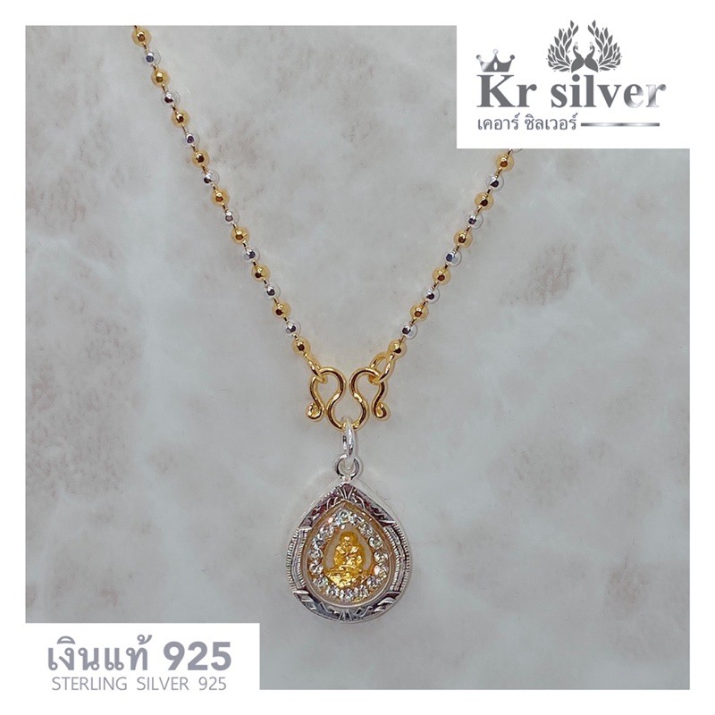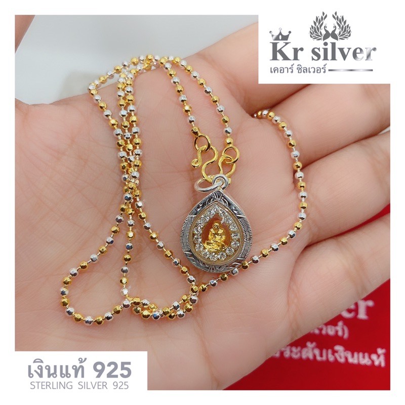 Kr silver เงินแท้มีใบรับประกัน สร้อยคอเงินแท้สองกษัตริย์ พร้อมจี้พระหลวงปู่ทวดล้อมเพชร / ลายบอลตัด หนา 2 มิล | N2K20P02