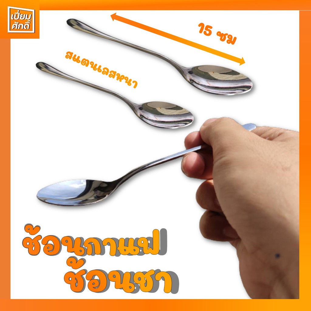 ช้อนกาแฟ ช้อนชา สแตนเลส หนา แพ็คละ 12 ชิ้น ความยาว 15 ซม.GOGO