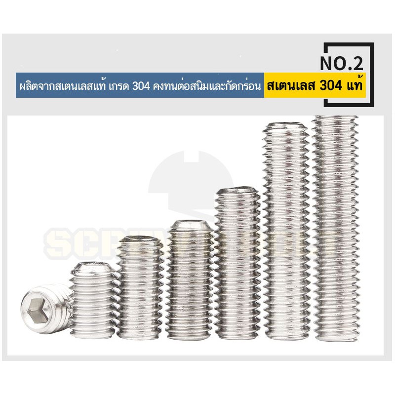 สกรู ตัวหนอน หกเหลี่ยม ปลายตัด สแตนเลส 304 เกลียวมิล หยาบ M3 M3.5 / Hex Socket Set Screw w/Cup Point