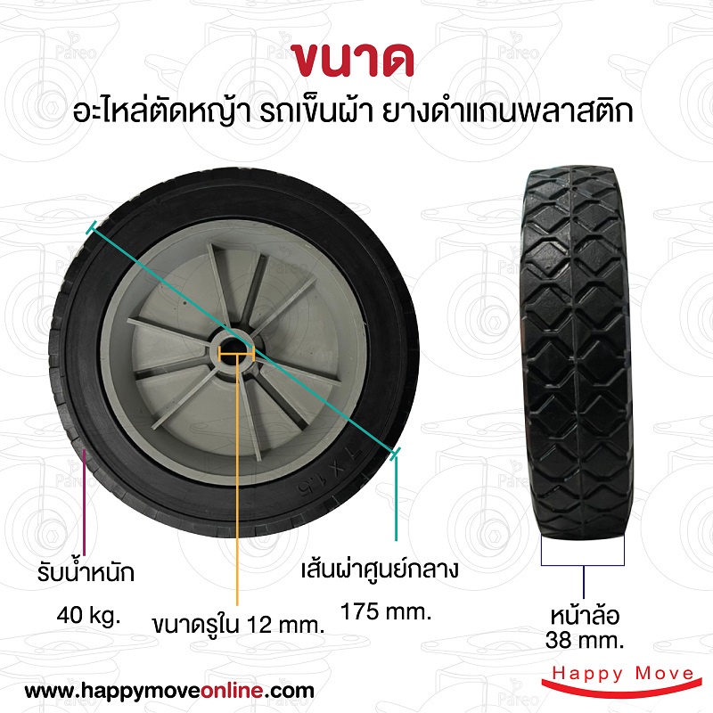 อะไหล่ล้อยางตัดหญ้า7นิ้ว(175มม)ลูกล้อรถเข็น ล้อยาง อะไหล่ล้อรถเข็นของ ล้อแกนพลาสติก ล้อรูบู๊ซ รับน้ำหนัก40-60 กก.Pareo