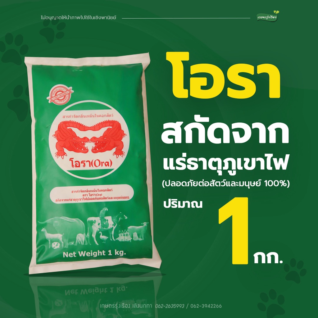 โอรา [สารกำจัดกลิ่นเหม็นในคอกสัตว์ สกัดจากเเร่ธาตุภูเขาไฟปลอดภัยต่อสัตว์เเละมนุษย์ 100%][ปริมาณ 1 กิโลกรัม]