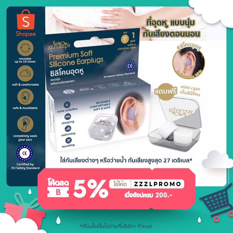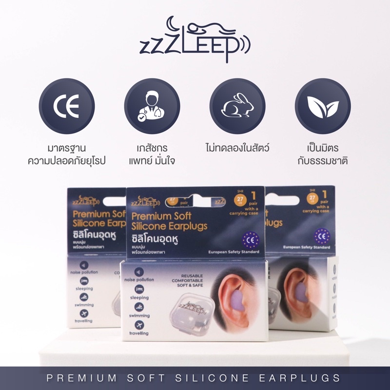 zZZLeep ที่อุดหูเวลานอนที่ดีที่สุด เกรดพรีเมียม 1 คู่ Ear plugs นุ่ม สบาย กันน้ำ กันเสียง 27dB