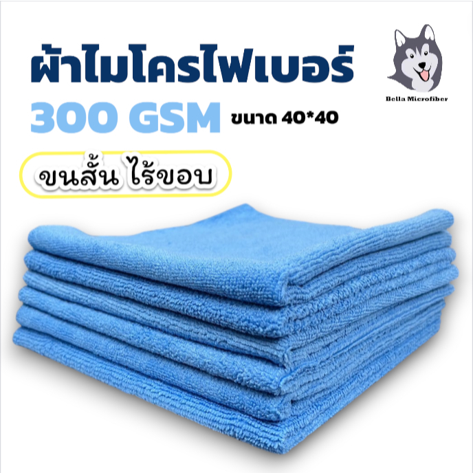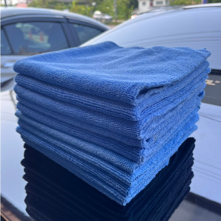 ผ้าเช็ดรถ ผ้าเช็ดแวกซ์ ผ้าไมโครไฟเบอร์ขนสั้นไร้ขอบ สีฟ้า ขนาด 40*40 ซม.300 GSM
