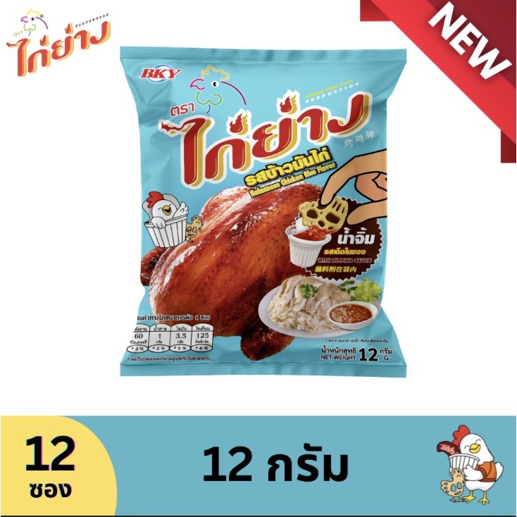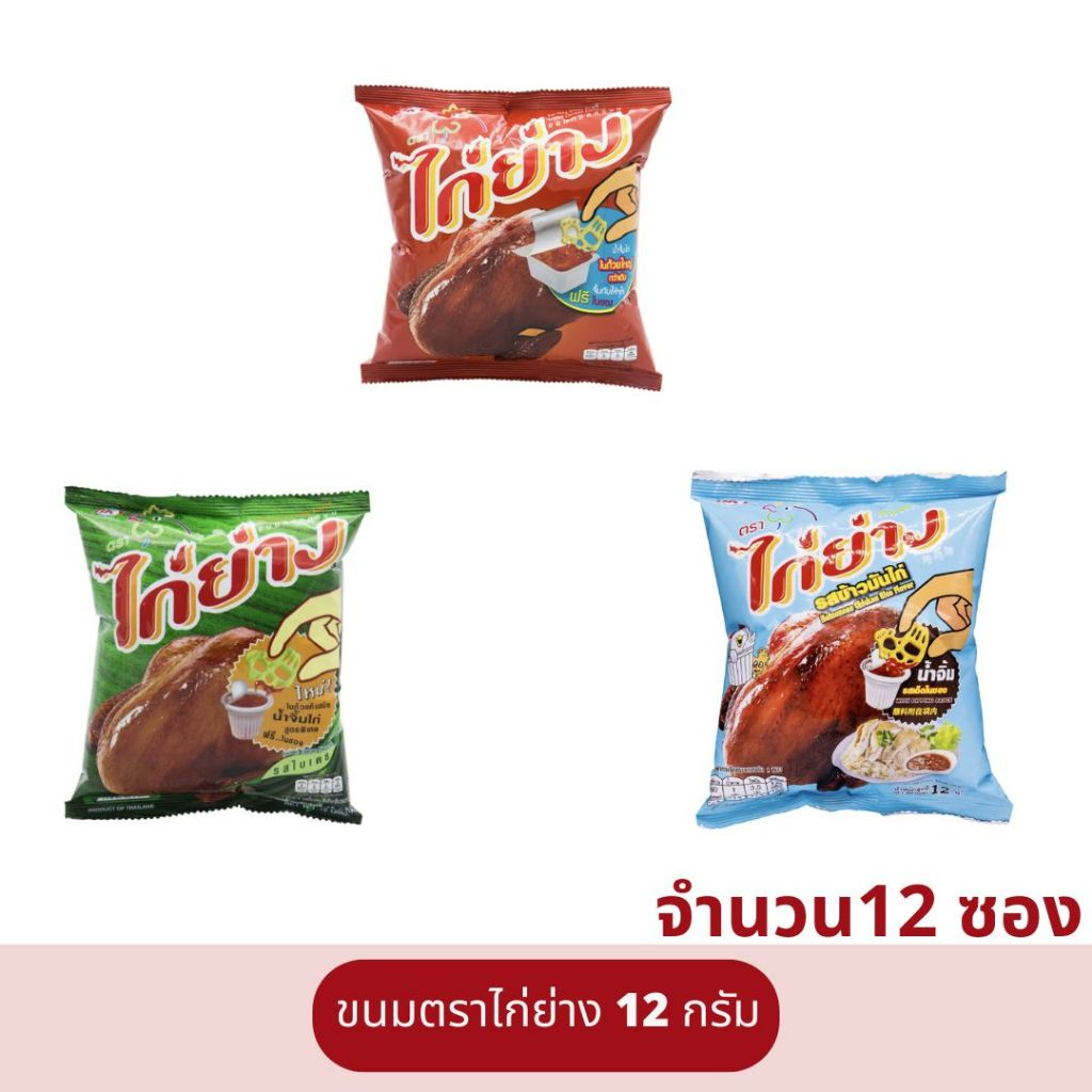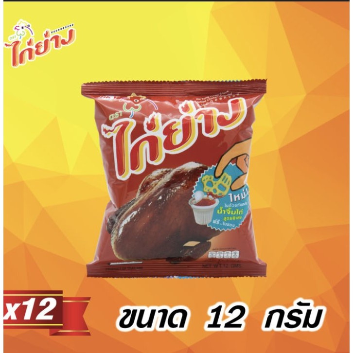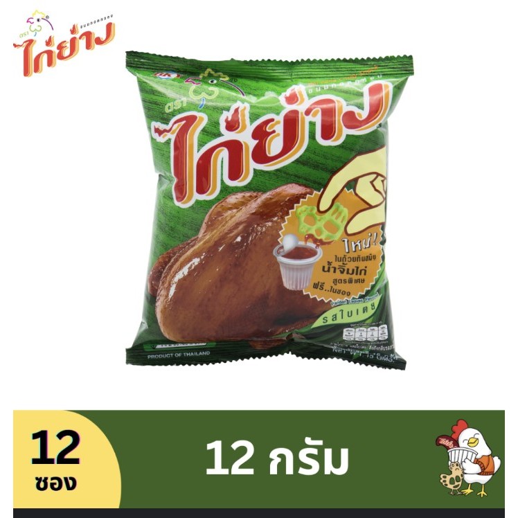 ขนมทอดกรอบ ไก่ย่าง 12 กรัม แพ็ค 12 ซอง ขนมซอง ขนมโรงเรียน ขนมตราไก่ย่าง