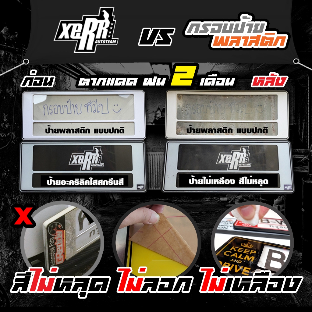 **ขายดี** XERR กรอบป้ายทะเบียนอะคริลิค กันน้ำ ลายเคฟล่า สีดำ โคตรวิ่ง