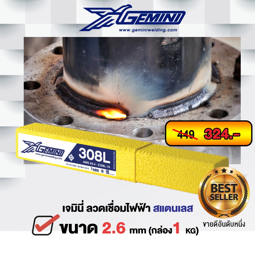 GEMINI ลวดเชื่อมสแตนเลส 308L 2.6 x 300 มม. 1 หลอด 1 กิโลกรัม เจมินี่
