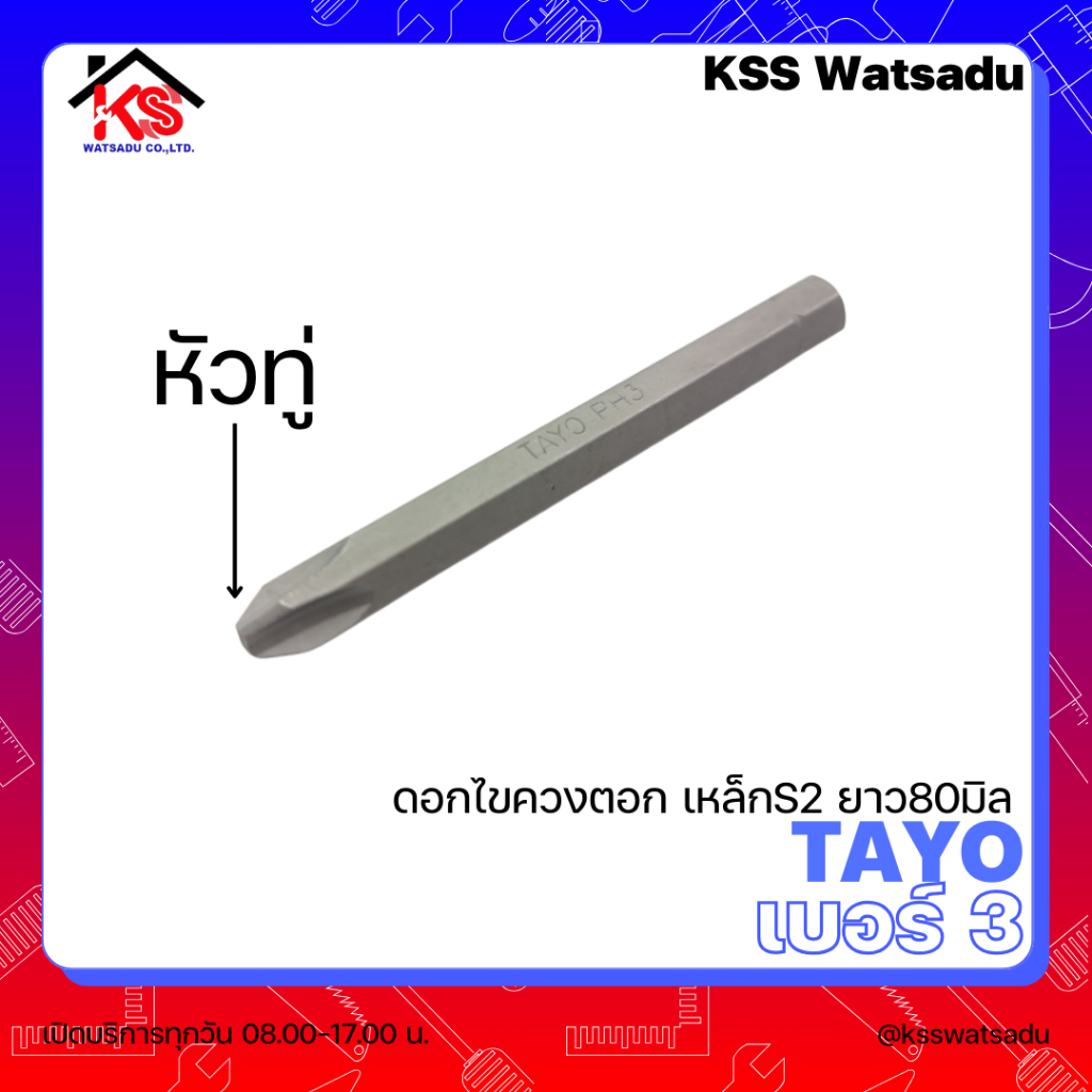 ดอกไขควงตอก เหล็กS2 ยาว80มิล TAYO (ราคาต่อ 1 ดอก) มี 2 เบอร์