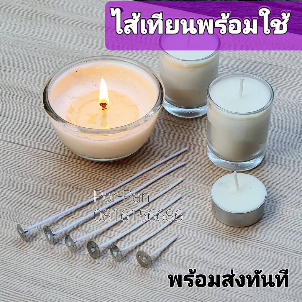 ไส้เทียนพร้อมใช้ [ไส้+หนีบฐาน(20ชิ้น)]เคลือบแล้ว ให้แสงสว่างดี จุดไฟได้ดี พร้อมใช้งานทันที ขนาดทดลอง พร้อมส่งทันทีถูกมาก