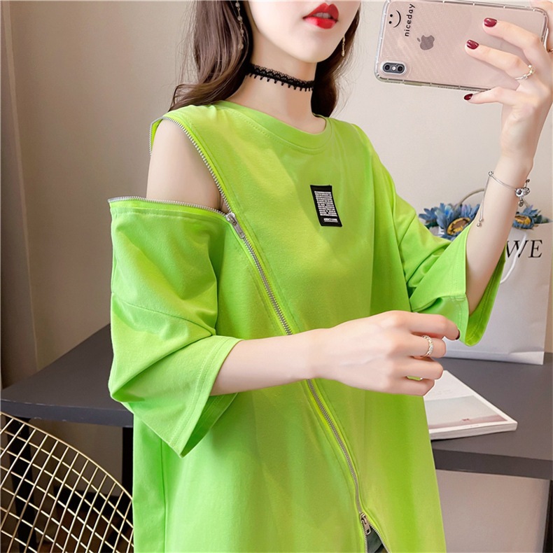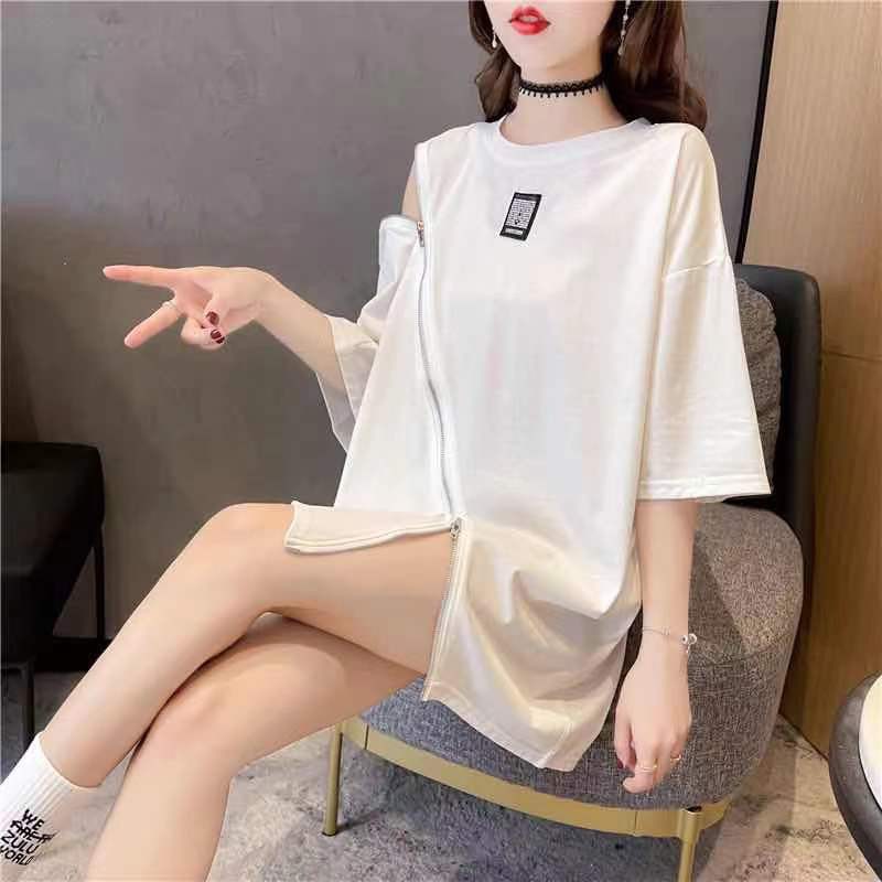 เสื้อแขนสั้นสาวอวบ Oversize (อก 48-64 นิ้ว) สีพื้น ซิปหน้ารูดได้ ผ้าคอตตอล สินค้าพร้อมส่ง A18