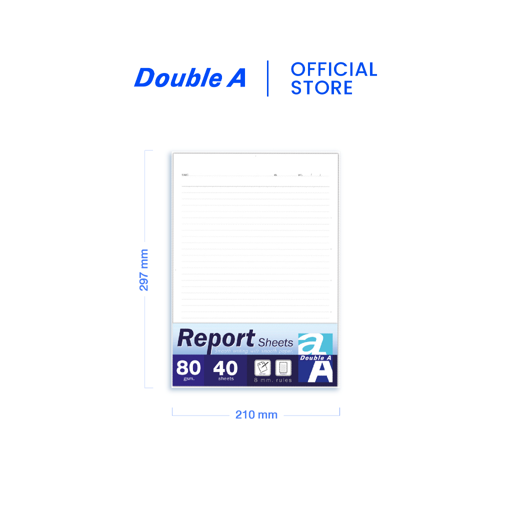 Double A Report Sheet กระดาษรายงาน ขนาด A4 หนา 80 แกรม 40 แผ่น จำหน่าย 1 แพ็ก
