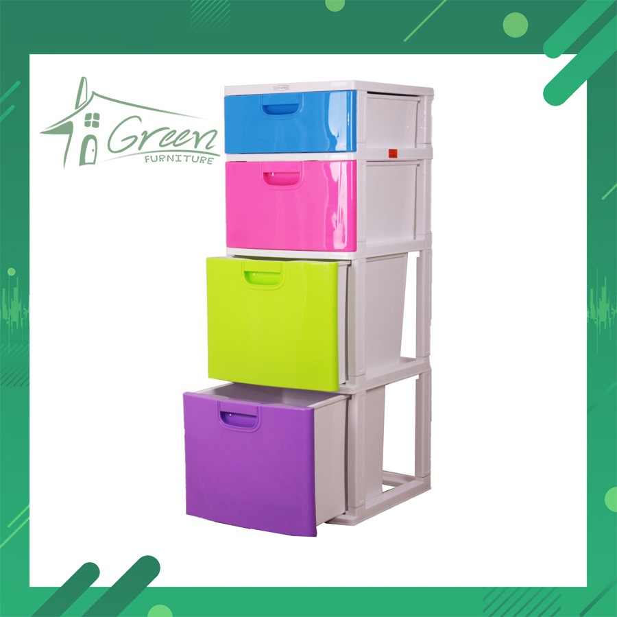 L112 ตู้ลิ้นชักจัมโบ้ทึบ ลิ้นชักพลาสติก ตู้ลิ้นชักมิวกี้ เก็บของ เสื้อผ้า สีพาสเทล มี 4 ชั้น