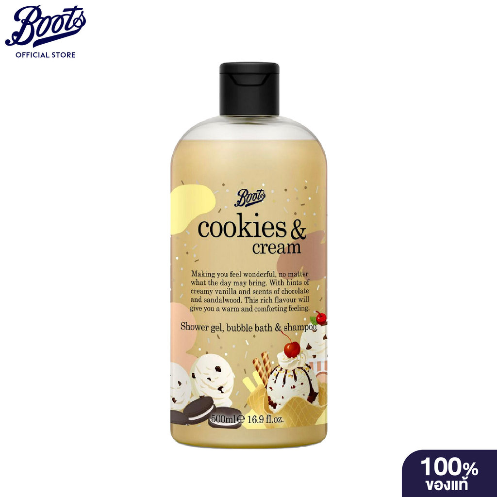 Boots Flavour Cookies & Cream Shower Gel Bubble Bath & Shampoo 500Ml บู๊ทส์ เฟเวอร์ เจล, บับเบิ้ล บาธ แอนด์ แชมพู