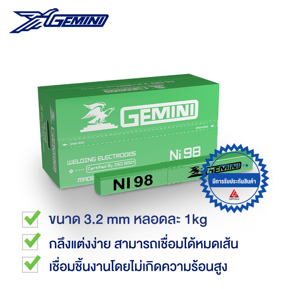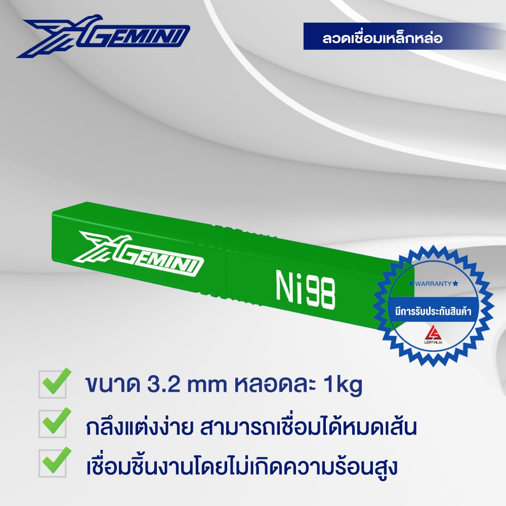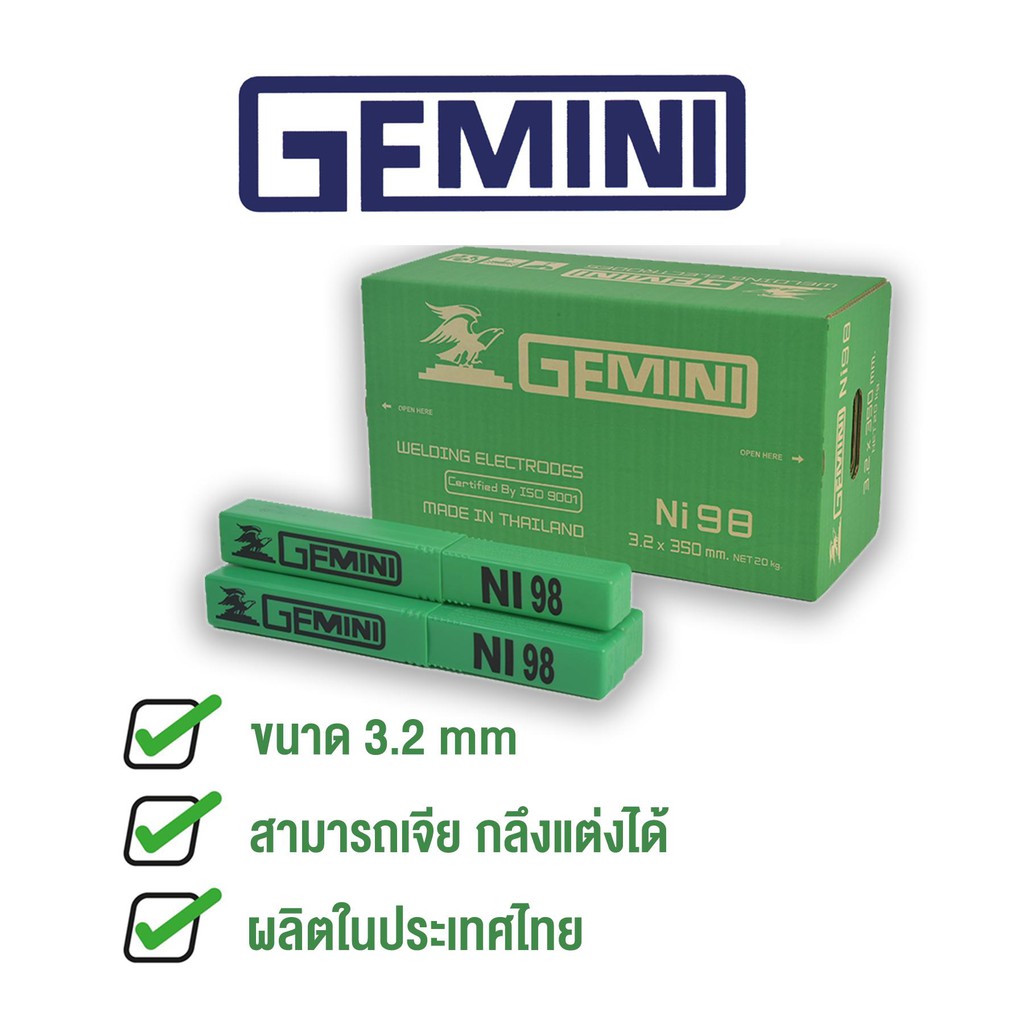 GEMINI ลวดเชื่อมเหล็กหล่อ เจมินี่ Ni98 3.2 x 350mm บรรจุ 1 กิโล