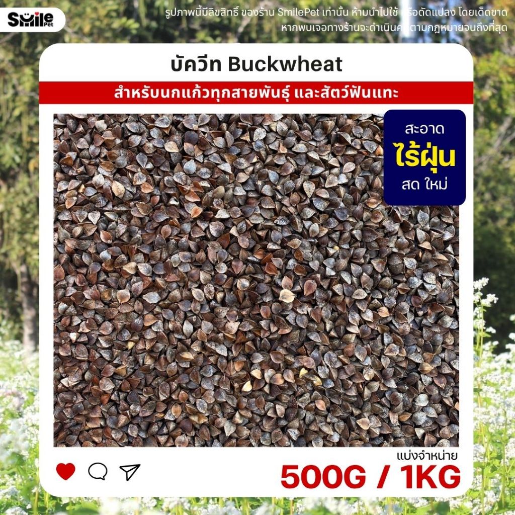 บัควีท Buckwheat เกรดA อาหารนกแก้ว และสัตว์ฟันแทะ สะอาด ร่อนฝุ่นทุกถุง (แบ่งขาย 500G / 1KG)