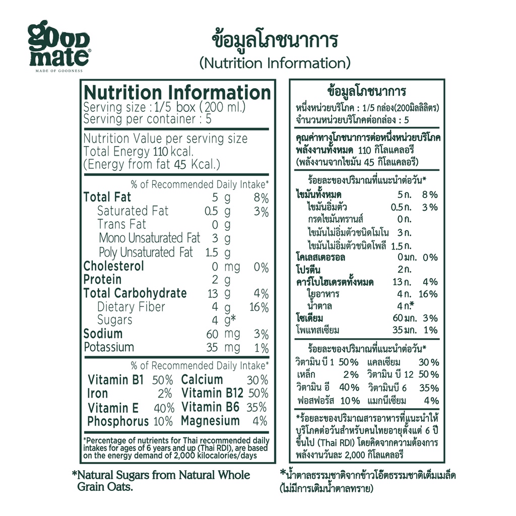 Goodmate The Original Oat Milk กู๊ดเมท นมโอ๊ต สูตรออริจินอล ขนาด 1000 มล. (6 กล่อง)