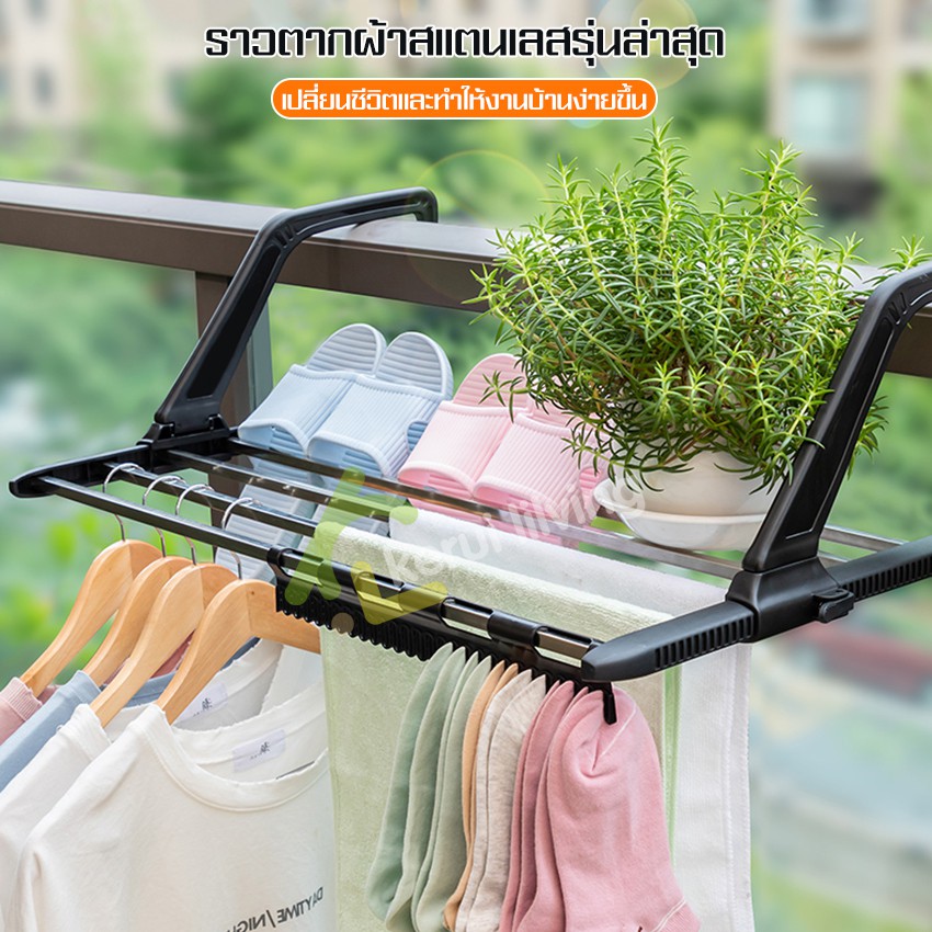 Allsking ราวแขวนขอบระเบียง ขอบหน้าต่าง ราว ที่ตากผ้า อเนกประสงค์ ราวตากผ้าระเบียงคอนโด ที่วางกระถางต้นไม้ ราวระเบียง