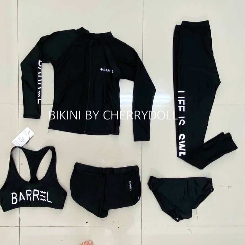 พร้อมส่งทันที 🍒 (M-XL) BARREL ชุดว่ายน้ำแขนยาว ขายาว(5ชิ้น)สีดำ🌤กันแดด ใส่ดำน้ำ~