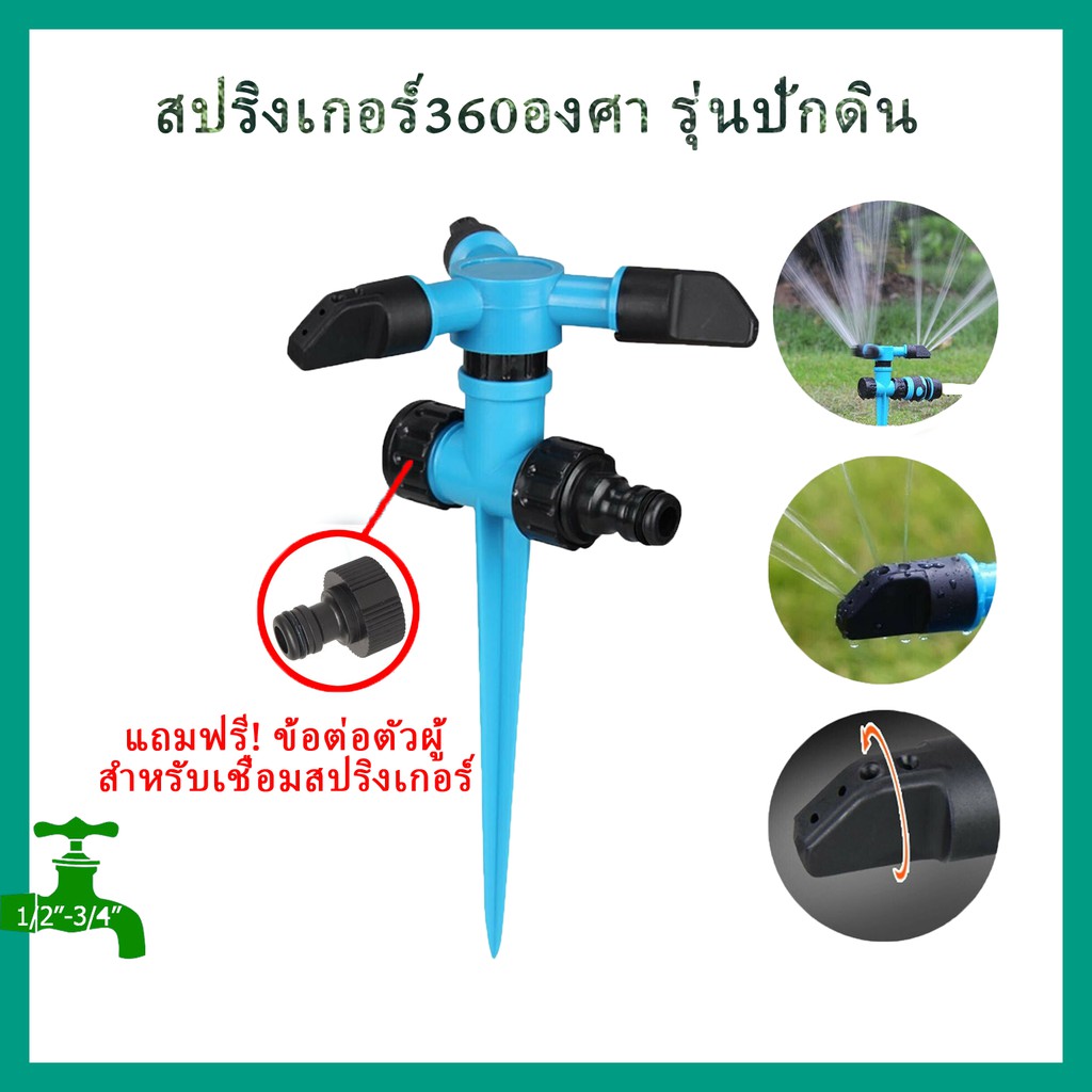 สปริงเกอร์360 รุ่นปักดิน เชื่อมต่อได้หลายจุด หัวฉีดปรับมุมได้3แขน รดน้ำต้นไม้ สนามหญ้า หัวต่อสวมเร็ว