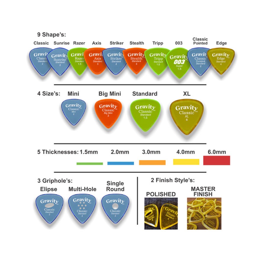 ปิ๊กกีต้าร์ Gravity Picks Classic Pointed Standard ปิ๊กอะคริลิคขัดขอบเรียบ ของแท้ (หลายขนาด)